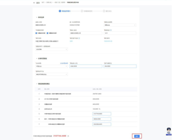 1.若退税企业类型属于“小微企业”(小型企业或微型企业)的,系统自动带出留抵退税申请信息。纳税人根据实际情况修改留抵退税申请信息,点击【提交】,系统跳转申请表单预览界面。