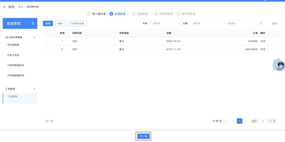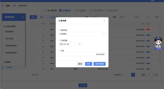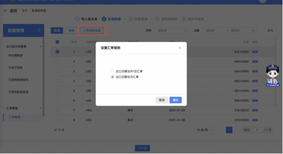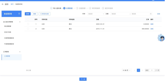 (2)选择汇率管理-汇率管理,可对下载的报关单中的币种对应月份的汇率进行管理;