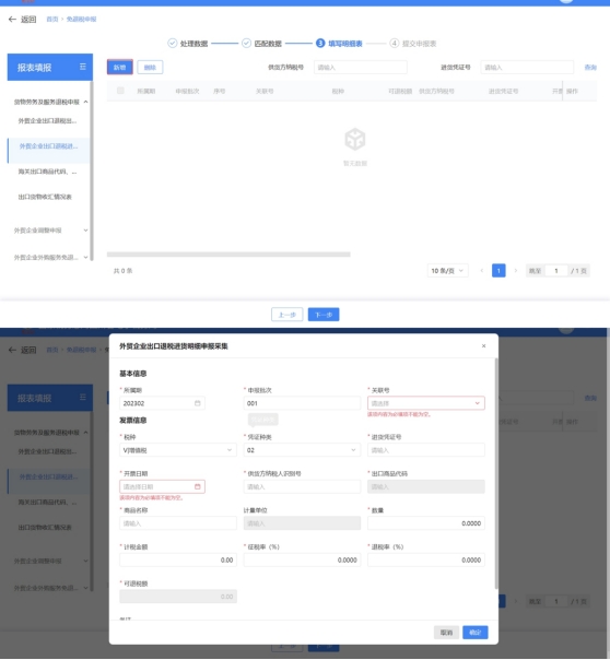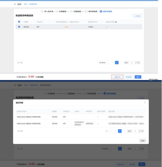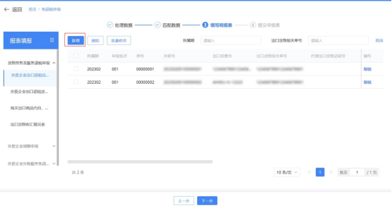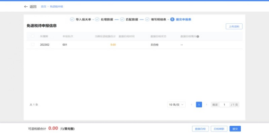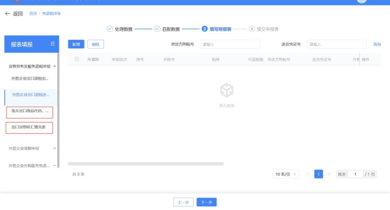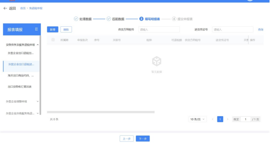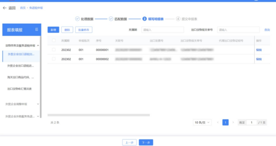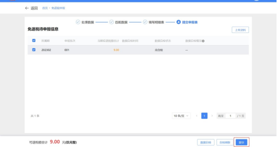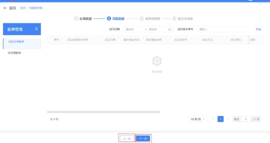 (3)点击页面下方的【上一步】可返回至“匹配数据”界面,点击【下一步】按钮,可跳转至“提交申报表”界面。