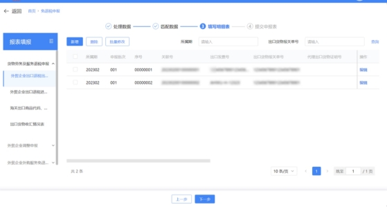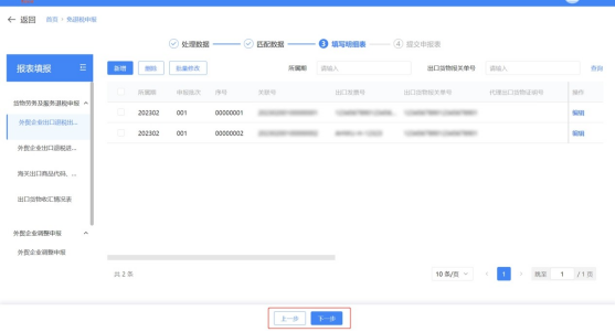 (6)点击页面下方的【上一步】可返回至“处理数据”界面,点击【下一步】按钮,可跳转至“填写明细表”界面。