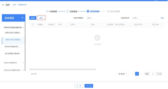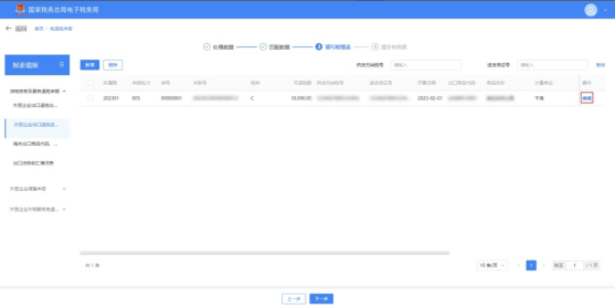 6.选择发票数据后,可在当前发票数据后方点击【删除】按钮,删除此行发票数据。