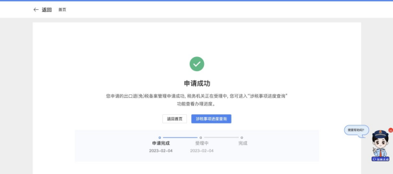 3)纳税人确认无误后,点击“提交”按钮,提交到核心,页面显示申请成功。