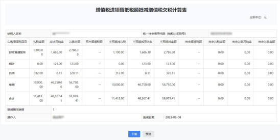 (二)系统跳转至增值税留抵抵欠界面,系统会自动带出该纳税人的留抵信息、欠税信息、呆账税金信息等。