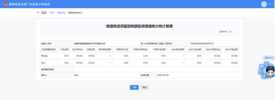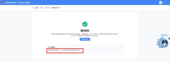 1.若纳税人及提交信息符合智能审核规则,则进入办理成功界面,留抵抵欠流程自动办结。