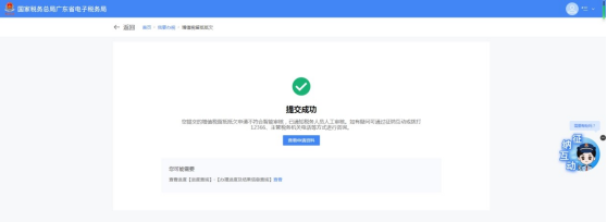 若提交信息不符合智能审核规则,系统提示提交成功。