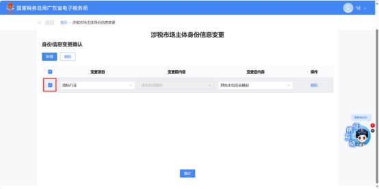 2.选择变更项目,填写变更后内容,确认无误后勾选变更项目,点击【确定】。