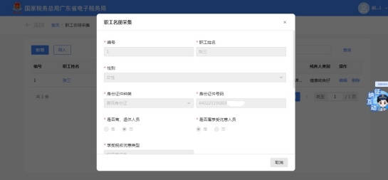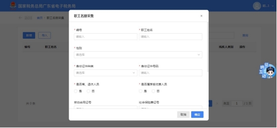 (三)点击“新增”按钮,可以进行职工名册的采集。采集完成点击“确认”校验通过后即完成职工的信息采集。