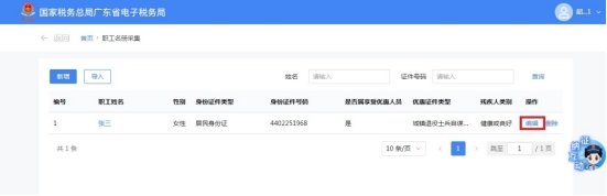 (四)点击“编辑”,可以对已采集的职工名册信息进行修改。修改完成点击“确认”校验通过后即完成职工的信息修改。
