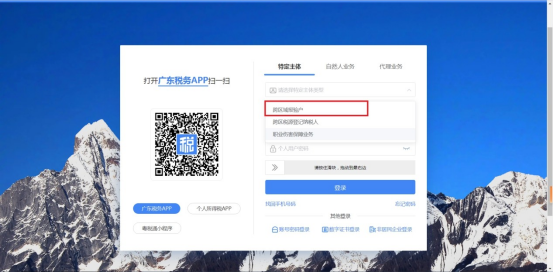 使用跨区域涉税事项联系人身份,点击【企业业务】-【特定主体登录】-【跨区域报验户】登录。