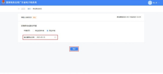 2.选择复业日期,选择当天则办理完成之后即可复业;选择当天之后日期,需到所选日期才可复业,点击【确定】。