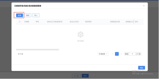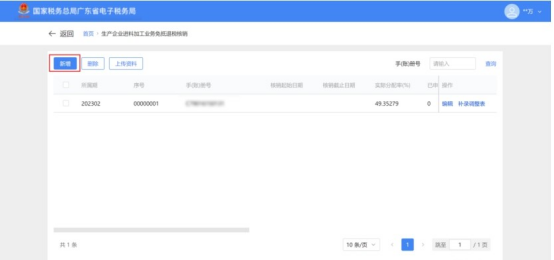 1.在采集列表页面点击“新增”按钮,弹出“生产企业进料加工业务免抵退税核销表”页面,可新增手账册信息。