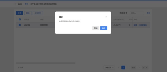 2.勾选需要删除的数据,点击“删除”按钮,可删除已采集的报关单信息。