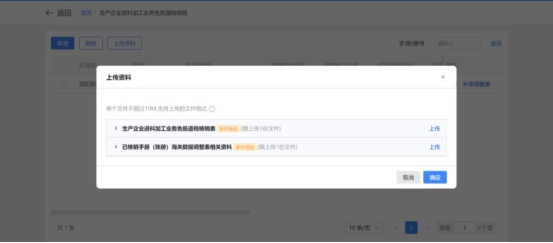 4.点击“上传资料”按钮,弹出上传资料页面,可上传对应的附列资料。