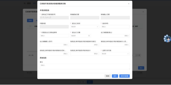 4.点击“编辑”按钮,弹出“已核销手(账)册海关数据调整表采集”编辑页面,可修改已采集的报关单信息。