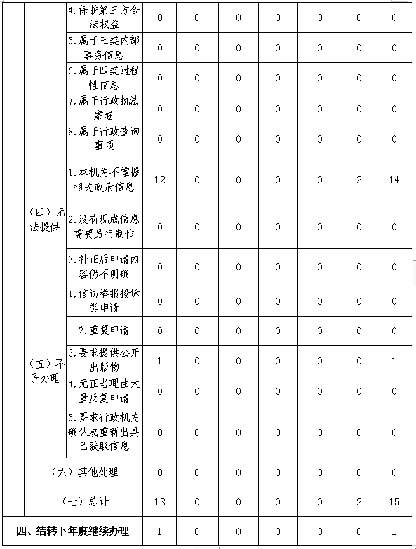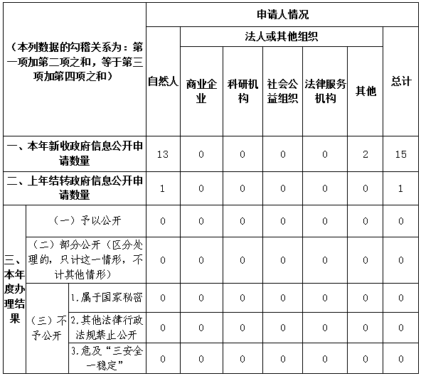 (二)依法做好依申请公开。依法做好依申请公开相关工作,坚持“以公开为常态、不公开为例外”原则,做好申请人政策辅导沟通工作,坚持以纳税人缴费人为中心做好依申请公开工作,依法保障申请人获取政府信息,对各项诉求做好合理引导,全年共受理并答复依申请公开15件,未发生相关行政复议或诉讼。