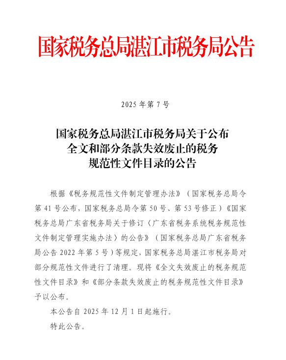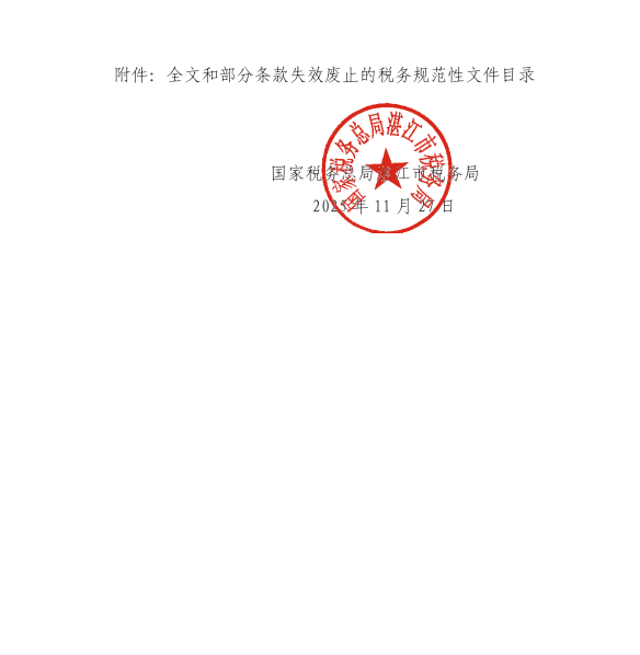 糖心vlog 湛江市税务局关于公布全文和部分条款失效废止的税务规范性文件目录的公告