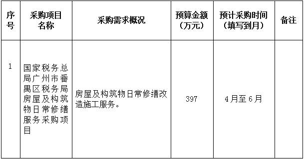 广州市番禺区税务局2023年4月至6月采购意向公开如下: