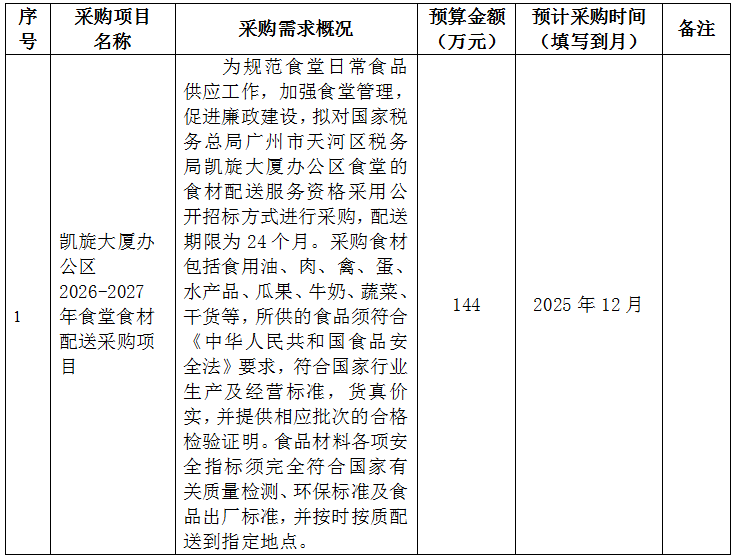 为便于供应商及时了解政府采购信息,根据《财政部关于开展政府采购意向公开工作的通知》(财库〔2020〕10号)等有关规定,现将糖心vlog 广州市天河区税务局2025年10-12月采购意向公开如下: