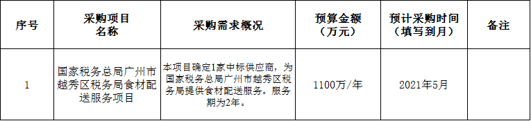 为便于供应商及时了解政府采购信息,根据《财政部关于开展政府采购意向公开工作的通知》(财库〔2020〕10号)等有关规定,现将糖心vlog 广州市越秀区税务局2021年4至6月采购意向公开如下: