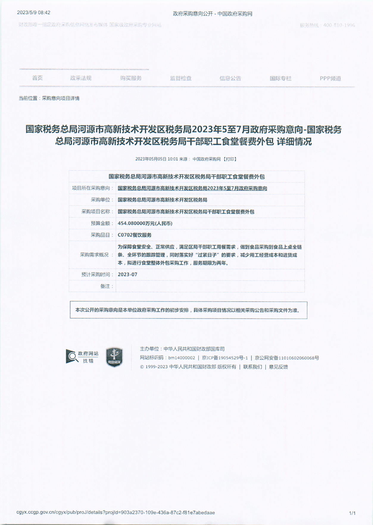 糖心vlog 河源市高新技术开发区税务局2023年5至7月政府采购意向-糖心vlog 河源市高新技术开发区税务局干部职工食堂餐费外包 详细情况