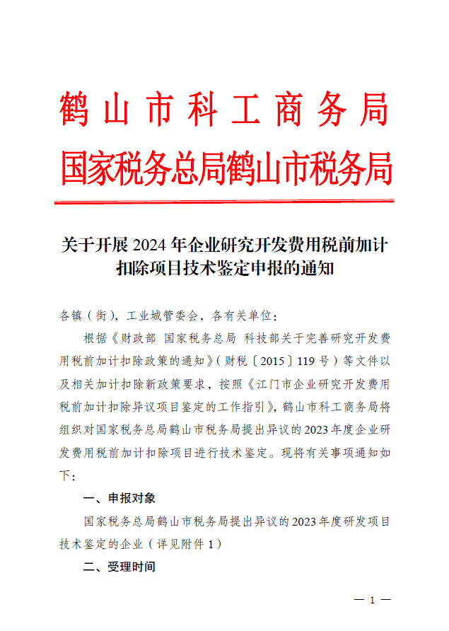 关于开展2024年企业研究开发费用税前加计扣除项目技术鉴定申报的通知