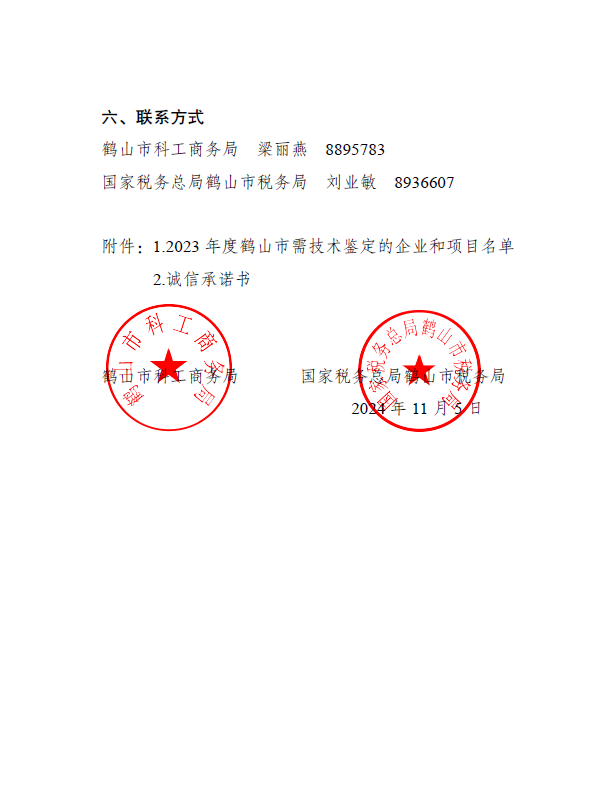 附件1:2023年度鹤山市需技术鉴定的企业和项目名单.xlsx