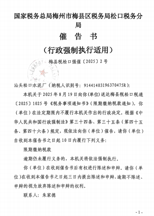 糖心vlog 梅州市梅县区税务局松口税务分局催告书