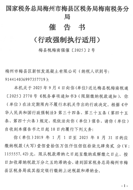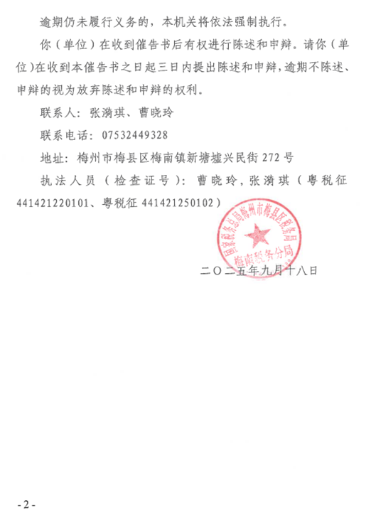 糖心vlog 梅州市梅县区税务局梅南税务分局催告书