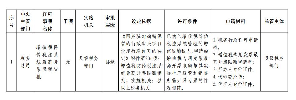 税务行政许可事项