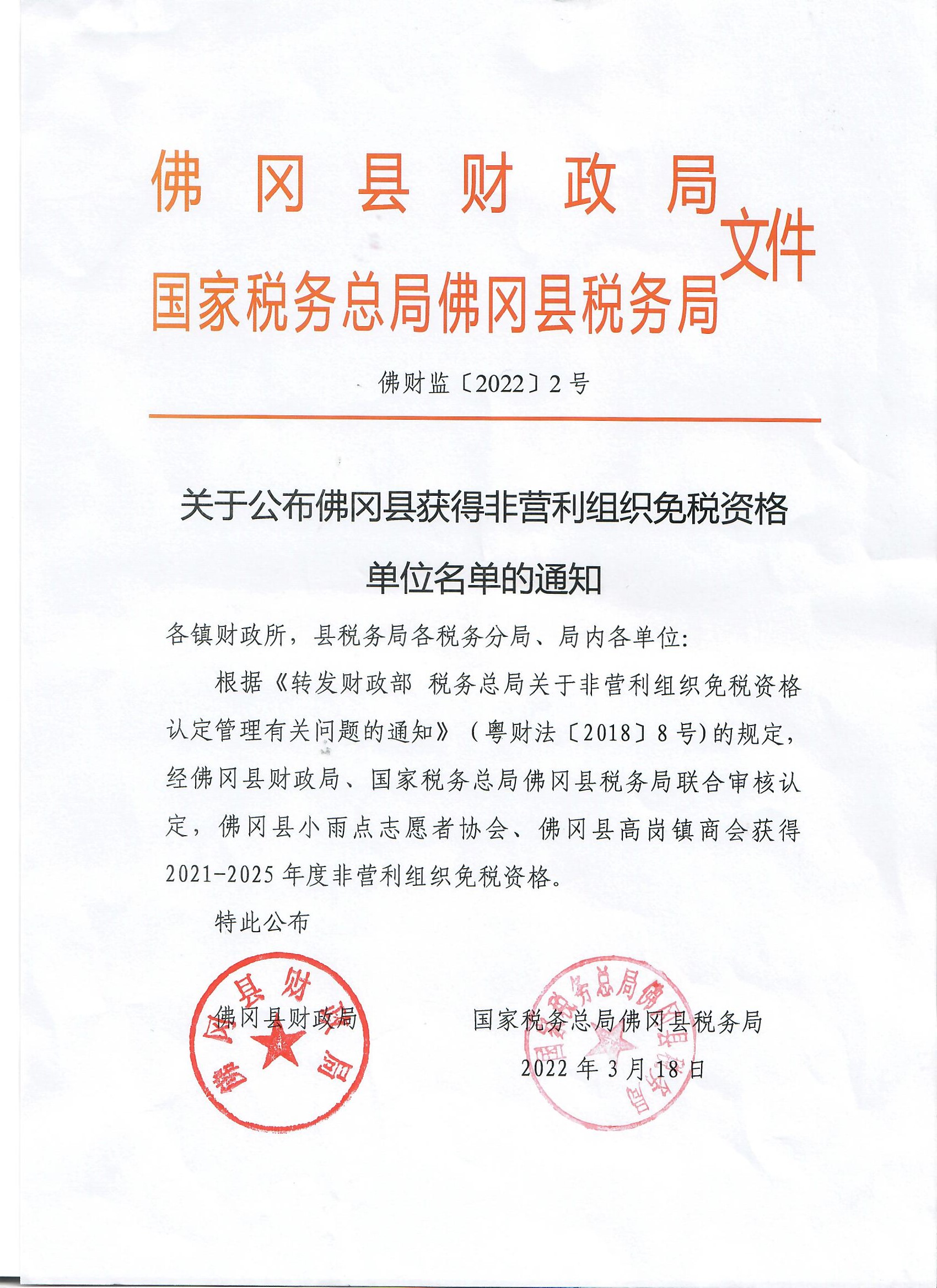 关于公布佛冈县获得非营利组织免税资格单位名单的通知