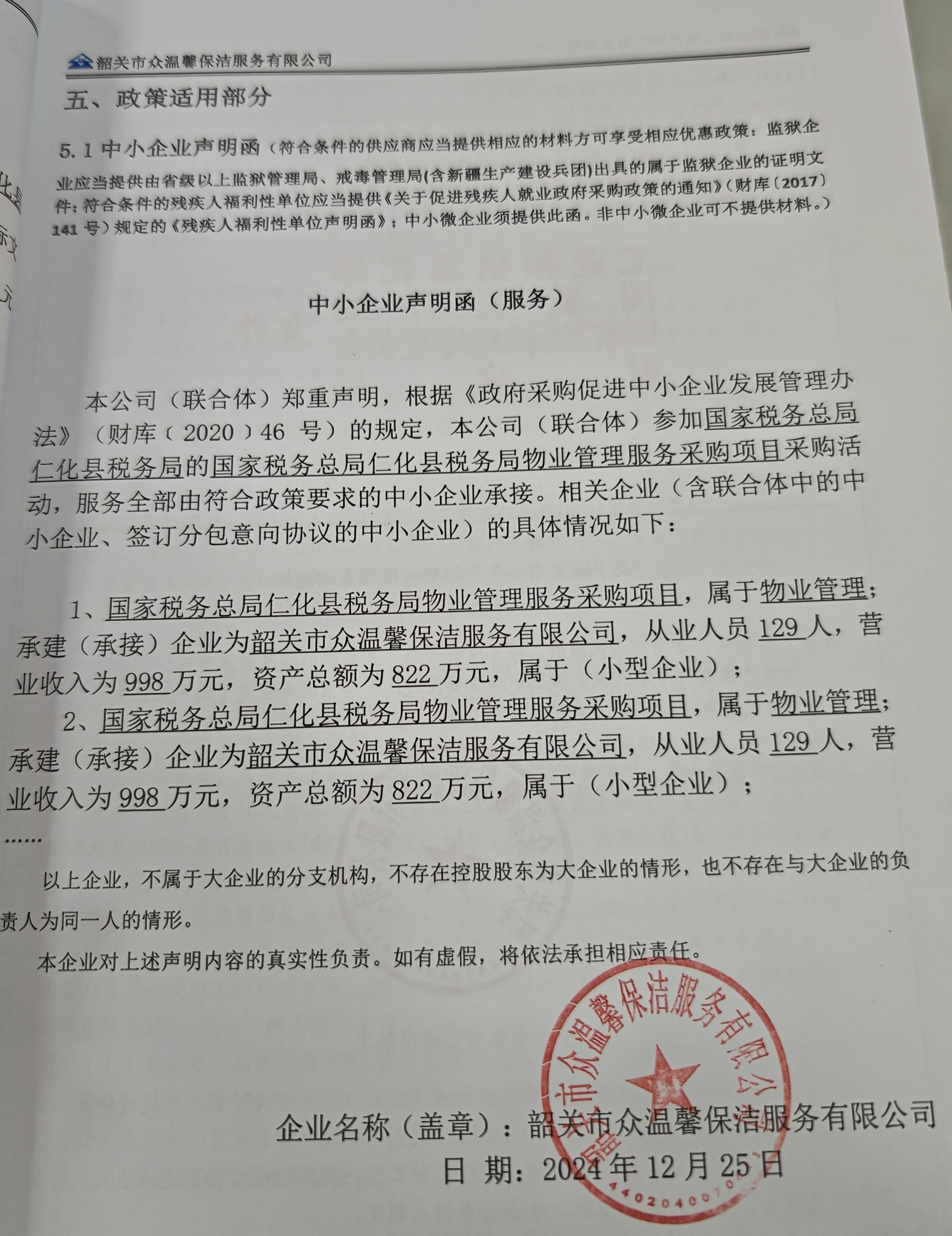 仁化县税务局物业管理服务采购项目 |