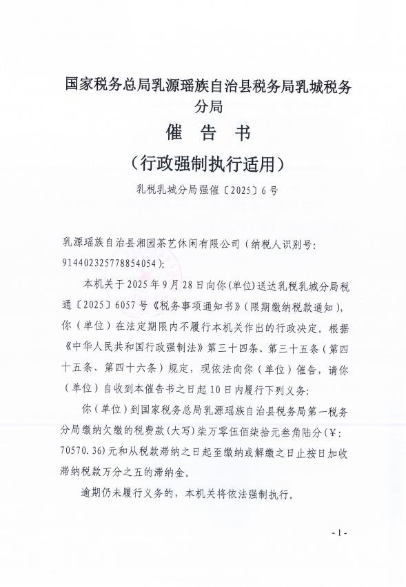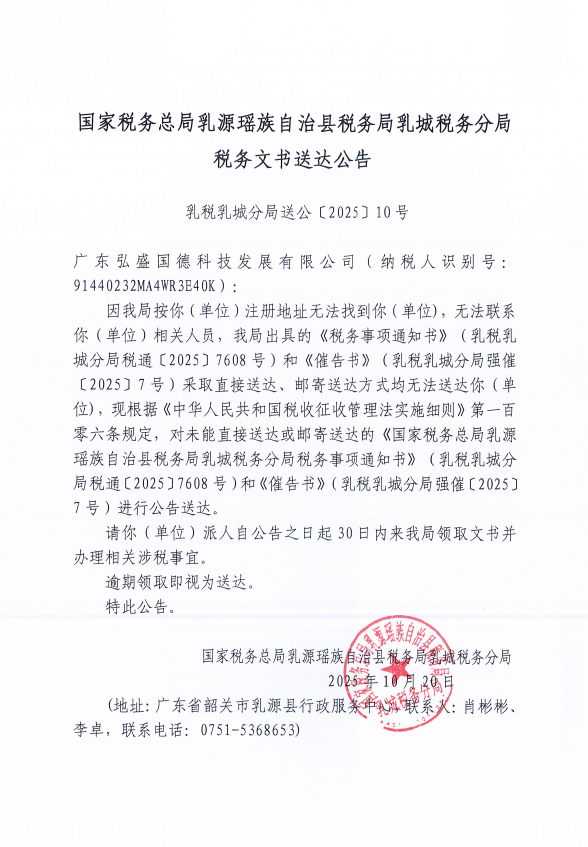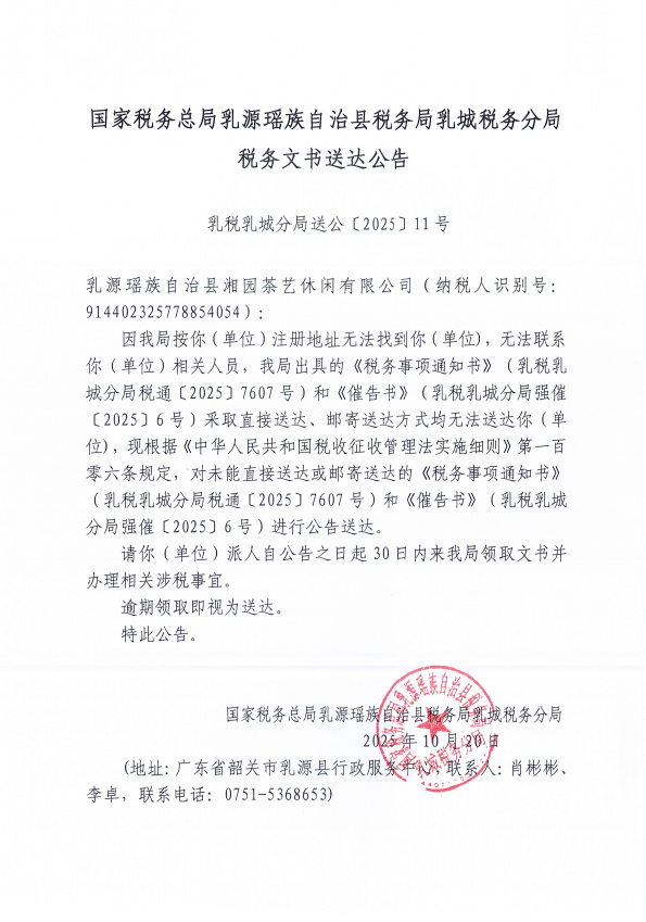 糖心vlog 乳源瑶族自治县税务局乳城税务分局税务文书送达公告(十月)(二)