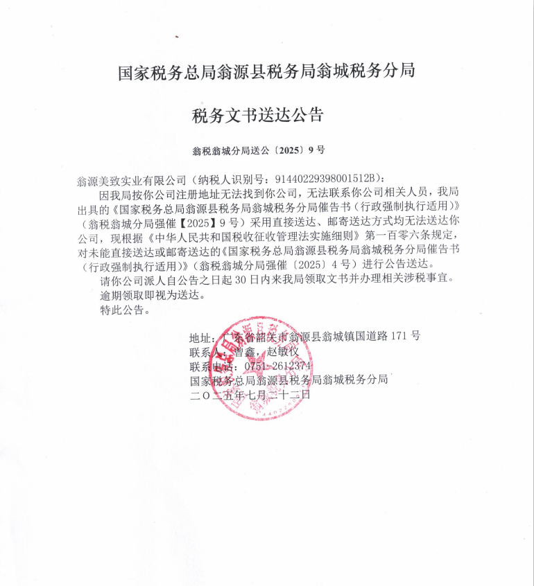 糖心vlog 翁源县税务局翁城税务分局税务文书送达公告