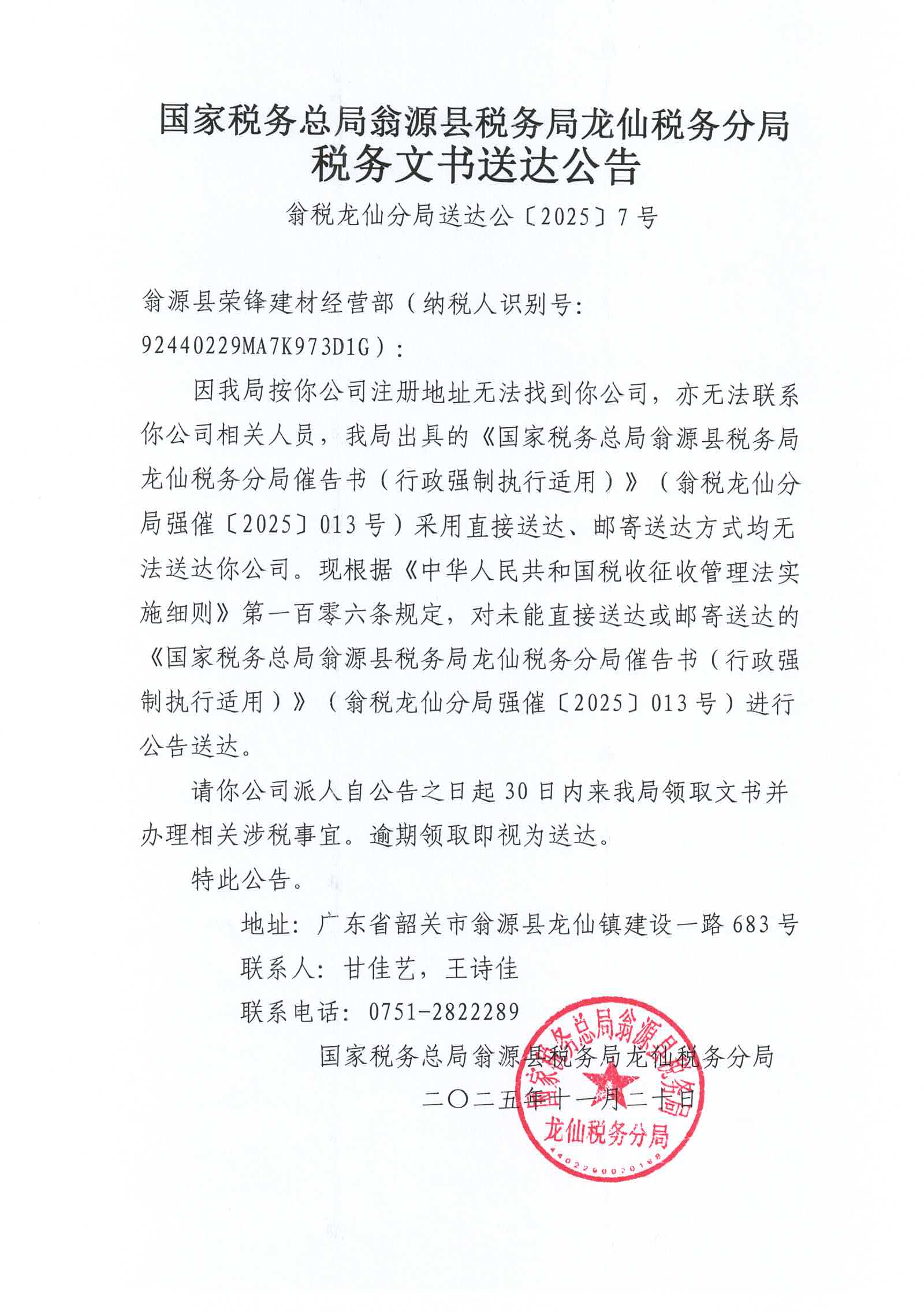 糖心vlog 翁源县税务局龙仙税务分局税务文书送达公告