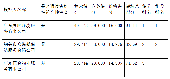 综合评分法中标(成交)候选供应商排序表