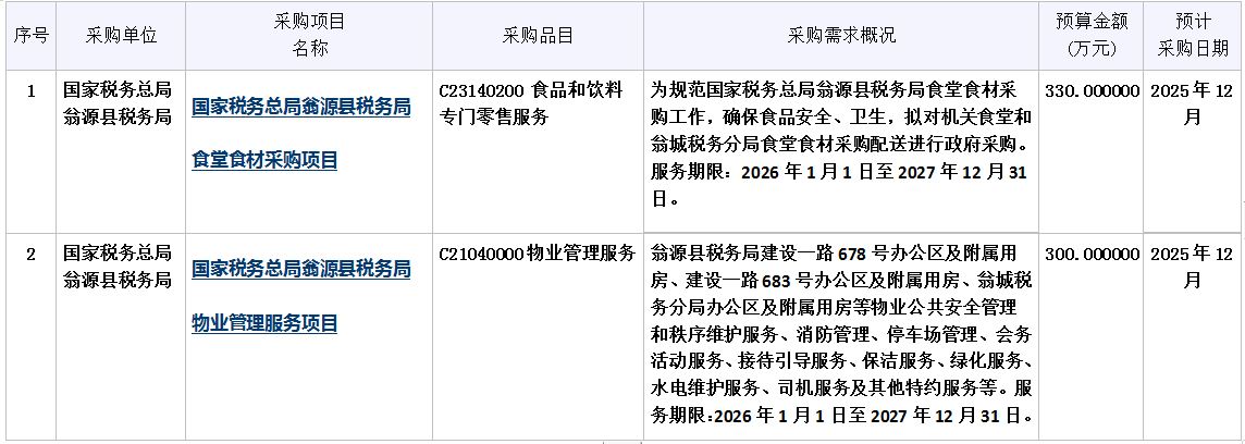 为便于供应商及时了解政府采购信息,根据《财政部关于开展政府采购意向公开工作的通知》(财库〔2020〕10号)等有关规定,现将糖心vlog 翁源县税务局2025年10至12月政府采购意向公开如下: