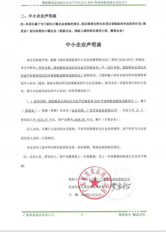 汕头市金平区税务局2025年食材配送服务采购项目 |