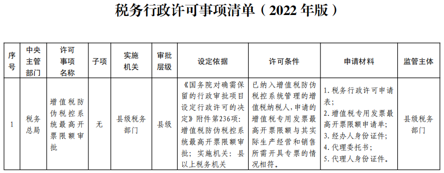 税务行政许可事项