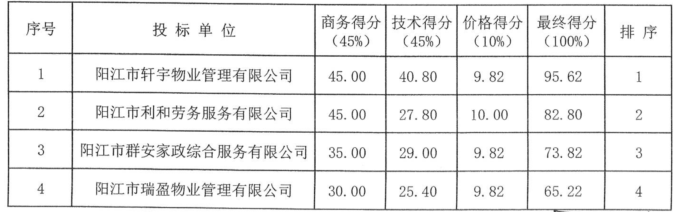 供应商名称:阳江市轩宇物业管理有限公司