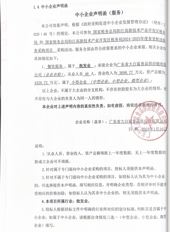 阳江高新技术产业开发区税务局2024-2025年度食堂配送服务采购项目
